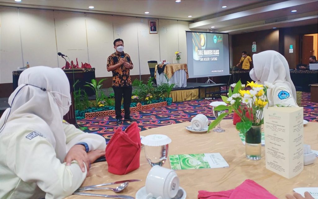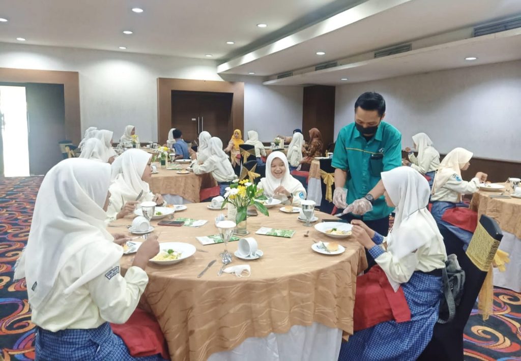 Para siswa kelas XI dan XII yang mengikuti kegiatan ini, mendapatkan materi pembelajaran dari pihak hotel mulai dari pengenalan hotel, materi food and beverage service hingga praktik secara langsung yang dibimbing oleh praktisi yang kompeten di bidangnya.